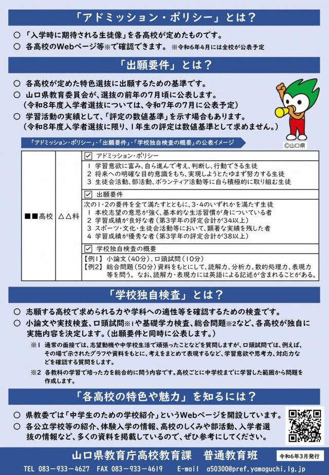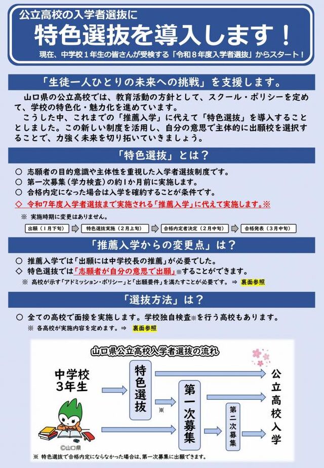 2026年度入試(令和8年度)から、山口県公立高校推薦入試が変わります!