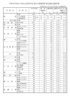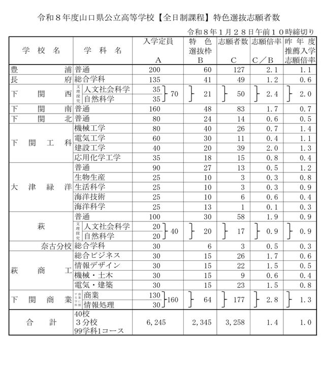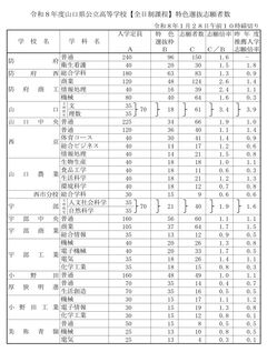 令和8年山口県公立高等学校 特色選抜志願倍率